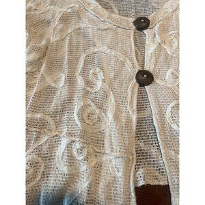 Frazzle White Sheer Embroidered abstract pattern Button-Up Cardigan XXL