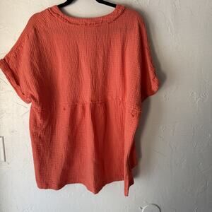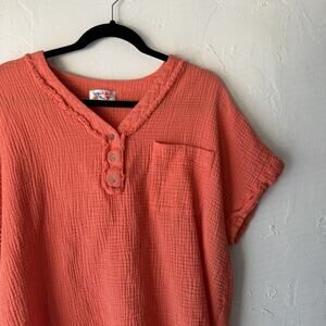 Freckled Poppy Shirt Womens Medium Coral Pink Gauze Textured Pocket Button Top