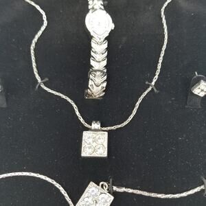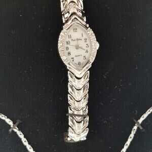 New with tags. Five piece set includes watch, earrings, necklace, and bracelot. Comes in Fred Belay Gift Box. Japanese Quartz movement watch. Retail Price $200. New battery installed prior to shipping.