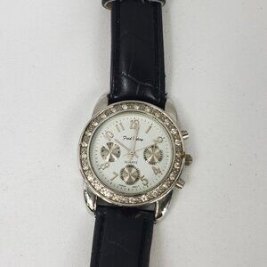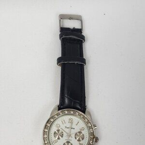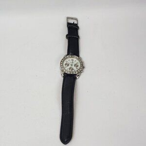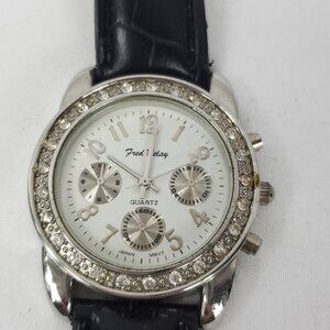 Fred Belay Rhinestone Face Black Leather Band Watch