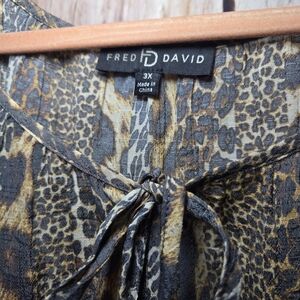 Fred David Aminal Print Blouse with Tie-Front Tunic Plus Size 3X