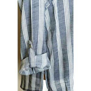 Fred David Women's Long Sleeve Button Up Collared Black/White Striped Blouse Size Medium. Condition is Pre-owned, excellent condition.