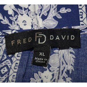 Fred David Blue Floral Print Blouse Ladies XL Lightweight Rayon Top Casual Top