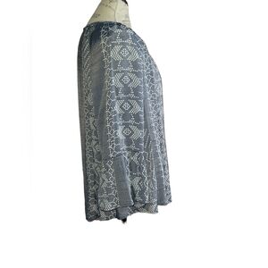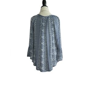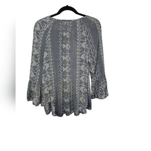 Transform your look with this flamboyant Bohemian blouse! Crafted from a light fabric with slightly sheer geometric designs, this belle sleeve blouse will give any outfit a romantic edge.