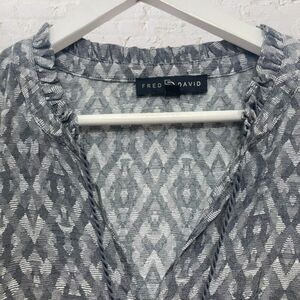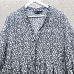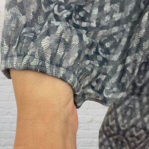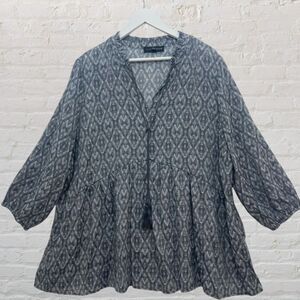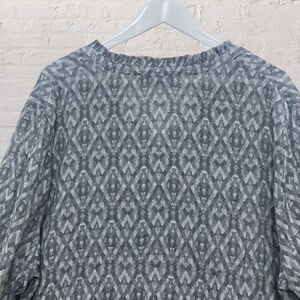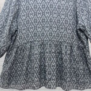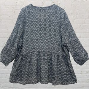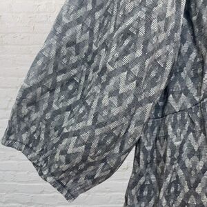 Fred David Ikat Peasant Blouse 2X – Gray Boho Tunic Balloon Sleeve Top