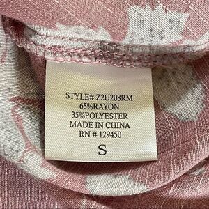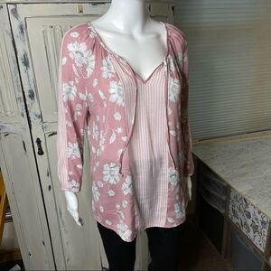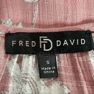 Fred David Pink Floral Tie Neck Long Sleeve Top Size Small