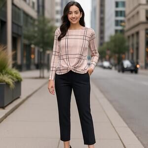 Fred David Sweater Size Medium Petal Plaid Long Sleeve Cinch Butter Soft Stretch