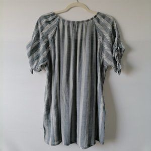 Fred David Womens Faded Blue Raglan Sleeve Scoop Neck Striped Blouse Top Size L