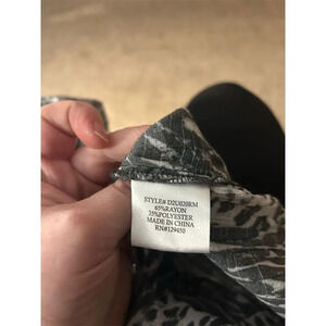 This Fred David blouse is a women's regular size S, featuring a stylish off-the-shoulder design with a multicolor animal print of zebra and leopard patterns. It is made from a blend of rayon and polyester, ensuring comfort and breathability. This pre-owned blouse has long sleeves and is machine washable for easy care.