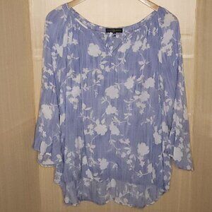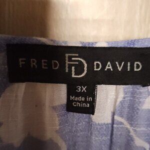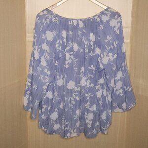Fred David women’s plus blue white floral gauzy lightweight top 3X. Gently used condition. Measurements are: 23” sleeve (measured from neck seam), 29” from shoulder to hem, and 29” from armpit to armpit.