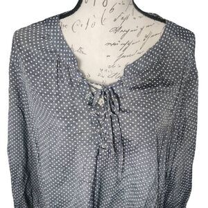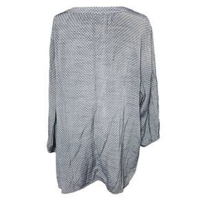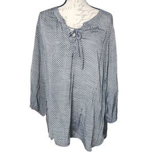 Fred David Women's Size 2X Gray White Polka Dot Lace Up 3/4 Sleeve Blouse