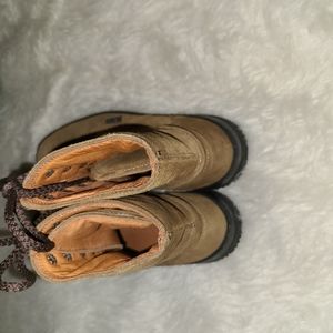 These have brown laces in the fronts. They are brown suede leather. They have a black rubber 1 inch sole. Mid calf 👢 boots. Very little ware. Accepting fair offers. I ❤ offers