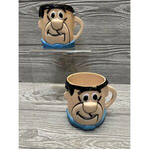 Fred Flintstone Vintage 1968 Vitamins Figure Head Plastic Cup Mug Set of 2