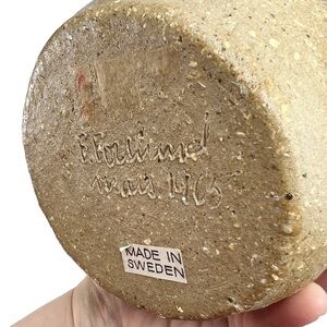 Vintage Fred Forslund Scandinavian Recycled Materials Two Tone Brown Vase. In great preowned condition with no chips or cracks. Signed on the bottom F. Forslund Mars (March) 1965 and a stamp that says “Made in Sweden”. Two tone geometric light and medium rich brown colors. Textured and seems to be made with recycled pottery pieces.