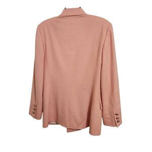 This vintage Fred Hayman blazer exudes timeless elegance with its soft pink hue and luxurious wool-cashmere blend. Perfectly tailored with a double-breasted design and gold-tone buttons, it reflects classic sophistication ideal for collectors or those seeking a refined wardrobe staple.