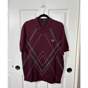 Fred Perry Abstract Argyle Knitted Polo Shirt Men's Size XL Mahogany NWT Cotton