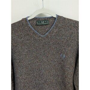 Fred Perry England Jumper Mens L Blue Brown Knit 100% Wool Long Sleeve Sweater