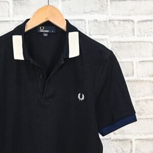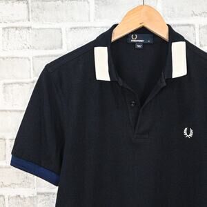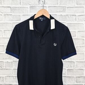 Fred Perry Men's Block Tipped Polo shirt in Navy Blue Cotton size Small