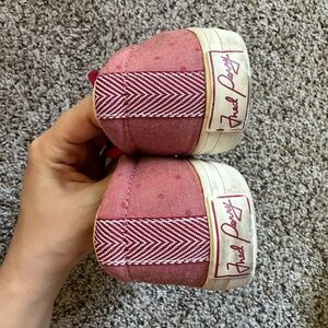 Classic red sneakers with subtle polka dots. Features Fred Perry logo on the side.