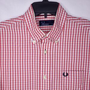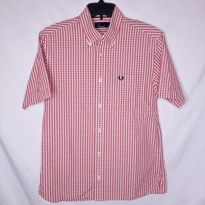 Fred Perry Shirt Mens Small Gingham Red, White Cotton Button Down