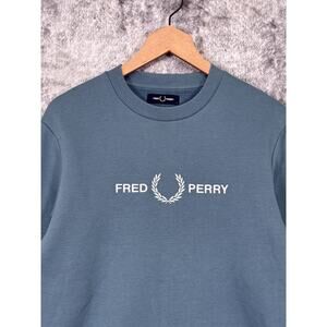 Fred Perry Sweatshirt Small Mens Embroidered Spell Out Crewneck Blue