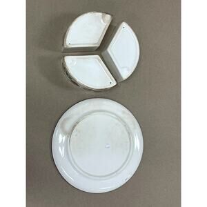 Dimensions: Triangular dishes approx. 2 ⅝” x 2 ⅝” x 4 ⅝”, base plate approx. 7 ½” wide.