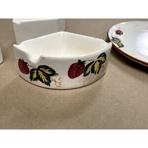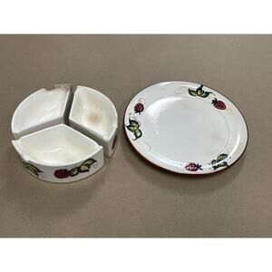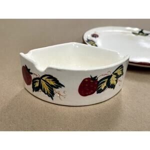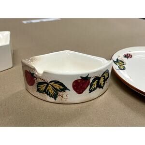 The item is a vintage Fred Roberts Co. Strawberry Jelly & Jam condiment set, likely from the 1950s, made in Japan. It includes: