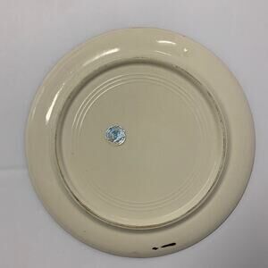 - Sizes: Plate is 7.75" across. Lid is 5.75" across. Bowls are 4.75 at widest point and 2-5/8" at center across and 1.25" deep.