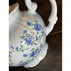 Vintage Fred Roberts and Company Made in Japan Teapot Pale Blue with Blue Roses, Excellent Condition, little blue spots on inside, bottom of teapot, it looks to be from the manufacturer (See Photos).