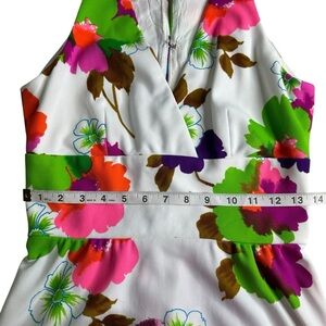Gorgeous floral Vintage 70s maxi dress with vivid florals in hues of purple, green coral and blue.