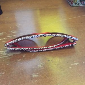FresFlare red, cat eye sunglasses with faux leopard lining. Super cute and perfect for any summer outing or music festival.