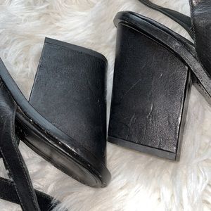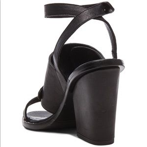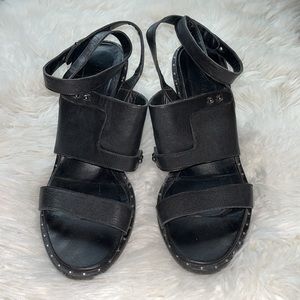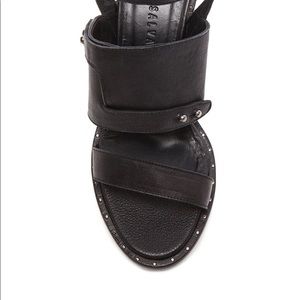 Freda Salvador Calfskin Go Strap Heeled Sandal Black Leather Block Heel Studded