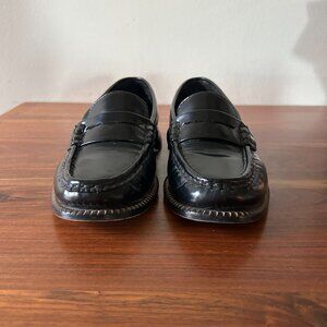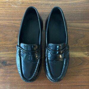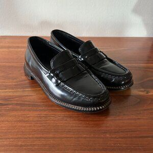 Freda Salvador Elba Penny Loafer, in Black Spazzolato size 6. I really love the look of these loafers but they’re a tad big for me so I need to purchase a smaller size. Only worn a few times. Great basic black loafer shoe and Freda Salvador makes amazing shoes! In addition to the pictures I’ve taken, I’ve also provided some pictures from their website for added perspective.