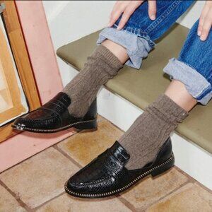 Freda Salvador NEW Tash D'Orsay Moccasin in black embossed croc size 7