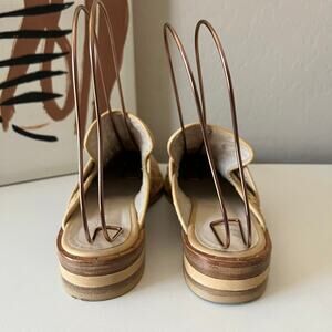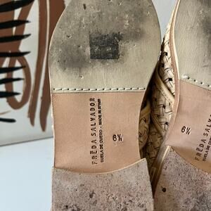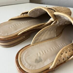 Freda Salvador Nude Woven Spanish Leather Slip On Pointed Toe Keen Mules 6.5