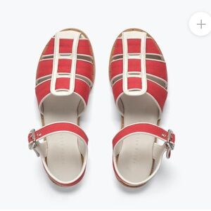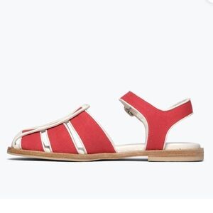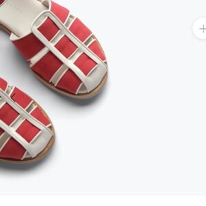 Stylish red and white sandals. Perfect for casual outings. Comfortable and chic design.