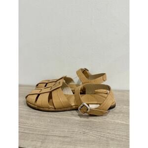 Freda Salvador Sera Leather Ankle Strap Fisherman Sandals Beige Womens Size US 9