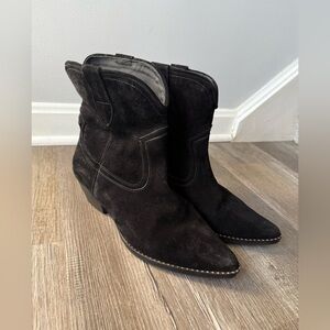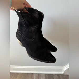 Freda Salvador Suede Boots Pointed Toe Dressy Ankle Booties Heels Black Size 10