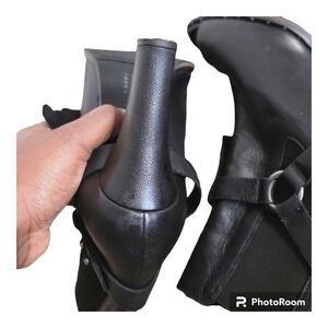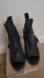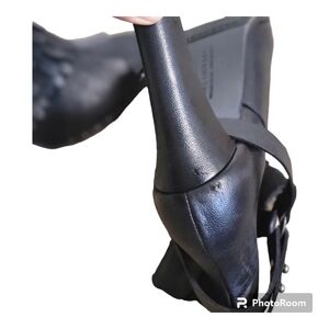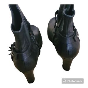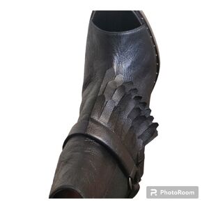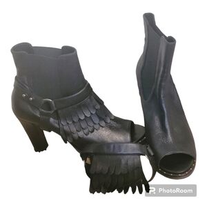 Freda salvador BLACK LEATHER HARNESS FRINGES OPEN TOE ANKLE BOOTS WOMEN’…