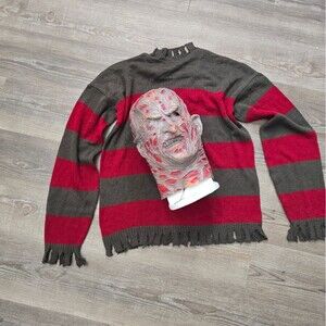 Freddy Kruger mask and sweater size womens large mens small/ medium sweater. Mask is new.