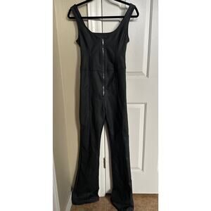 Freddy WRUP Faux Leather Jumpsuit High Waisted Flare Black Small