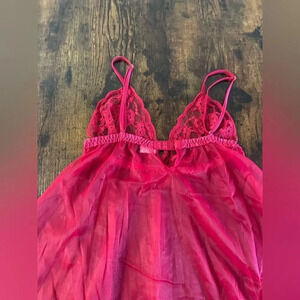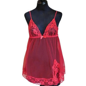 Made of sheer chiffon and trimmed with lace cups and trim.