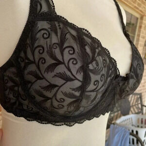 Frederick’s Of Hollywood Black Sheer Embroidered Push Up Underwire Plus Size Bra