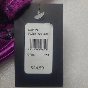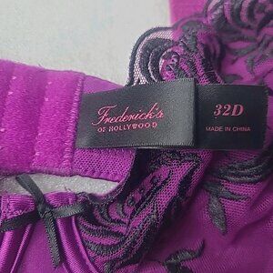 Frederick's Of Hollywood Daphne Purple With Black Trim Unlined Bra 32D NWT