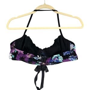 Fredericks Of Hollywood Floral Print Tie Front Lace Accent Halter Bra XL
