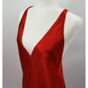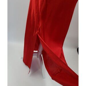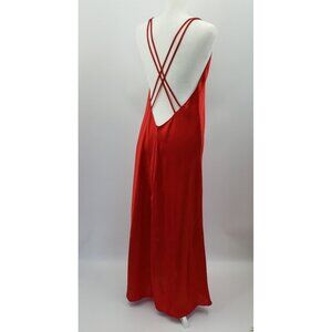 Fredericks Of Hollywood Long Chemise Nightgown Sz L Red Satin Plunge Slip Dress