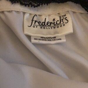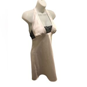 Frederick’s Of Hollywood Sexy Halter Chemise Sz. M White Black Lace Low Cut