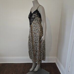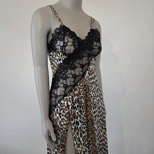 Frederick's Of Hollywood Size M Vintage Leopard Slip Dress Gown Sheer w/ Slit