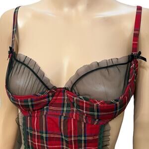 Fredericks Of Hollywood Tartan Plaid Apron Style Nightie Lingerie Medium Ruffle