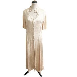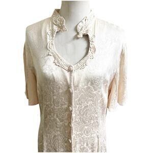 Fredericks Of Hollywood Vintage Nightgown Button Front Floral Size 16 Champagne